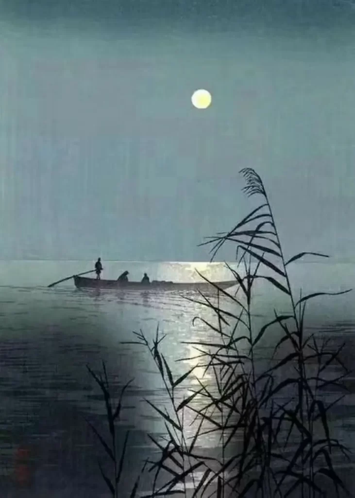 (6) 谁家今夜扁舟子:今夜是谁家的孩子在驾着小船?